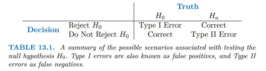 13.1.2 1종 오류와 2종 오류 (가설 검정에서 발생할 수 있는 다양한 유형의 실수 또는 오류)
