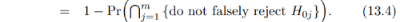 두 사건 A와 B가 독립이면 Pr(A∩B) = Pr(A) * Pr(B)라는 기본 확률을 떠올려보자. m개의 검정이 독립적이고 모든 m개의 귀무가설이 참이라는 다소 강력한 추가 가정을 하면