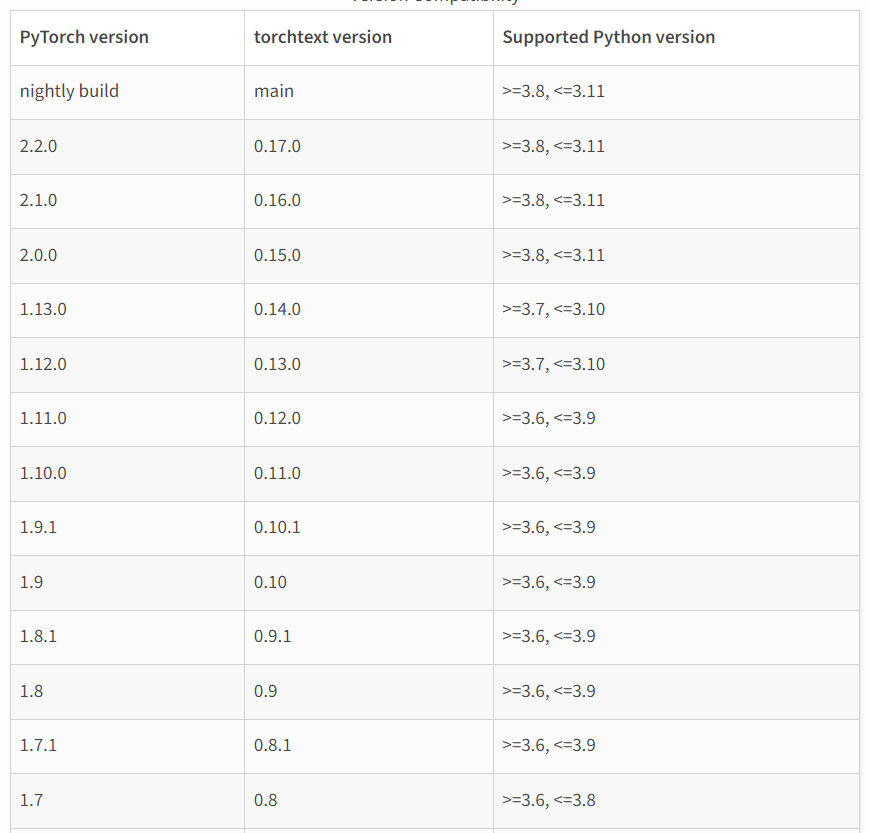 > torchtext 0.13버전은 torch 2.0.0 버전을 필요로 한다..